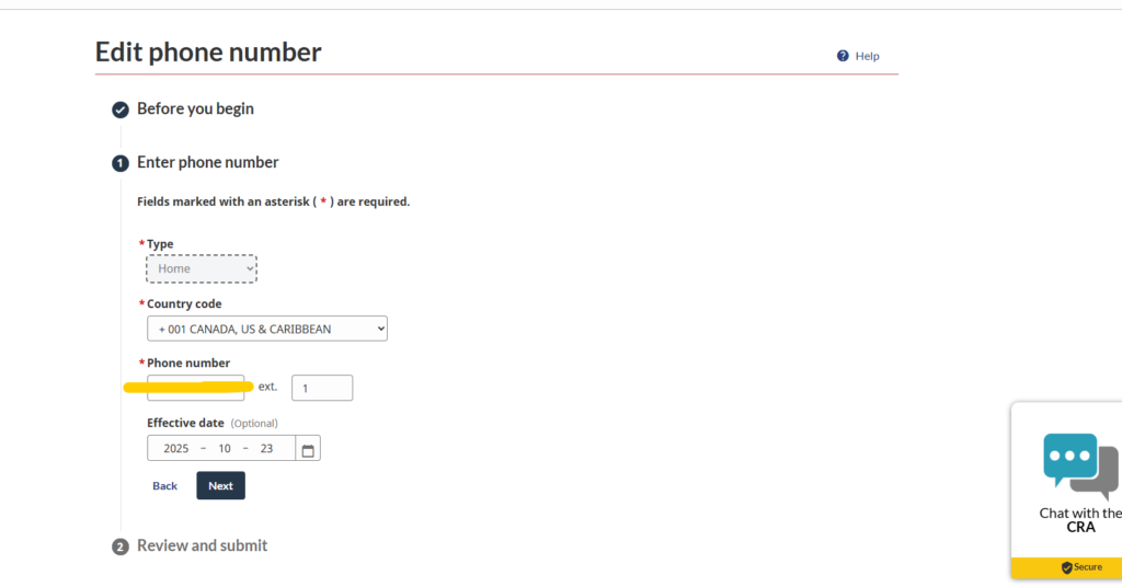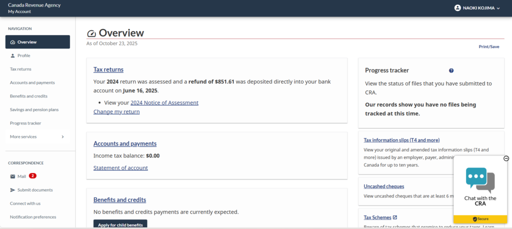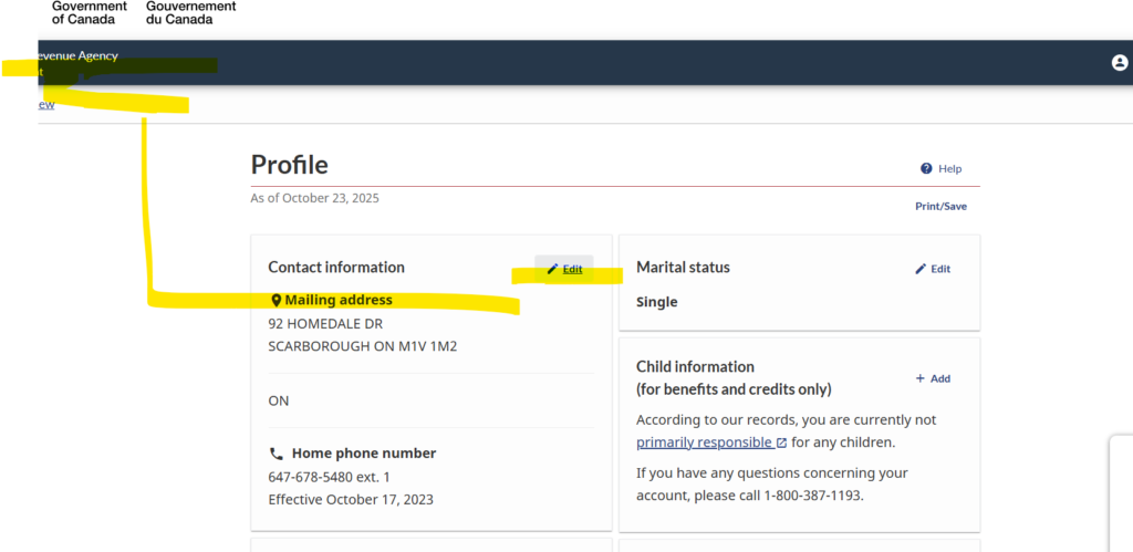 MY CRA ACCOUNTを使った住所のアップデート