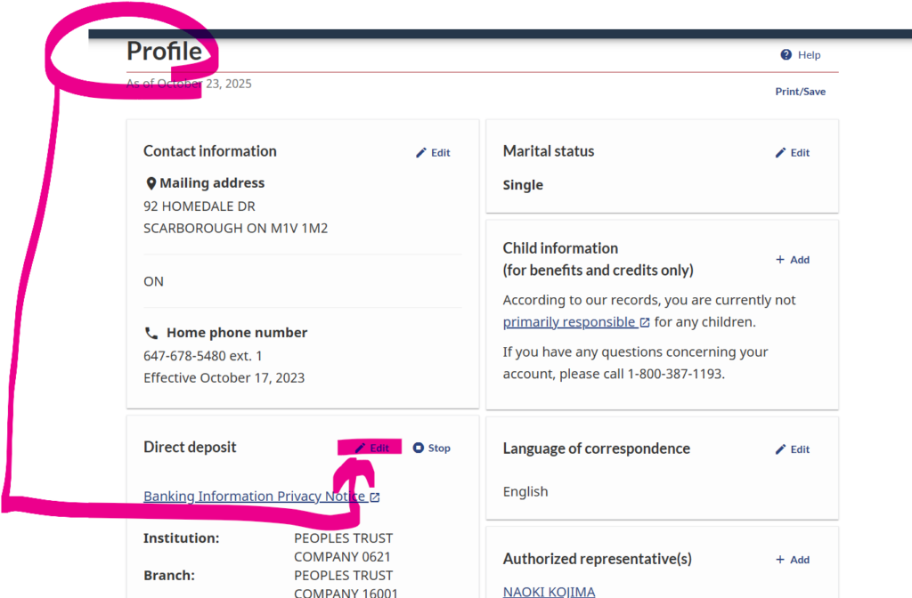 3月24日をもって、DIRECT DEPOSIT 登録/変更が電話でできなくなってしまいました。それにともない他の方法でDirect deposit を登録/変更する必要があります。確定申告者個人でMYCRAを作り、そこからDirect deposit を登録/変更する方法を解説します。
