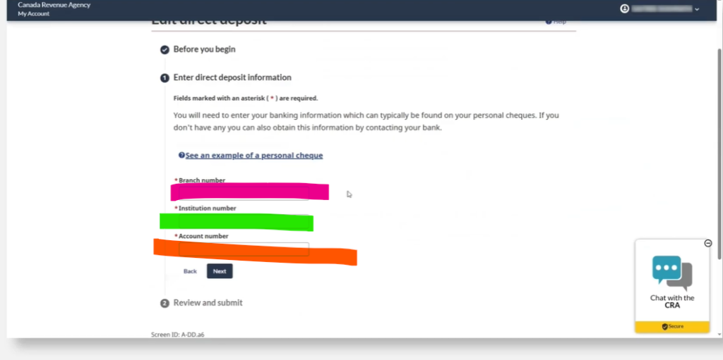 MY CRA ACCOUNT のWISEの口座への登録の方法